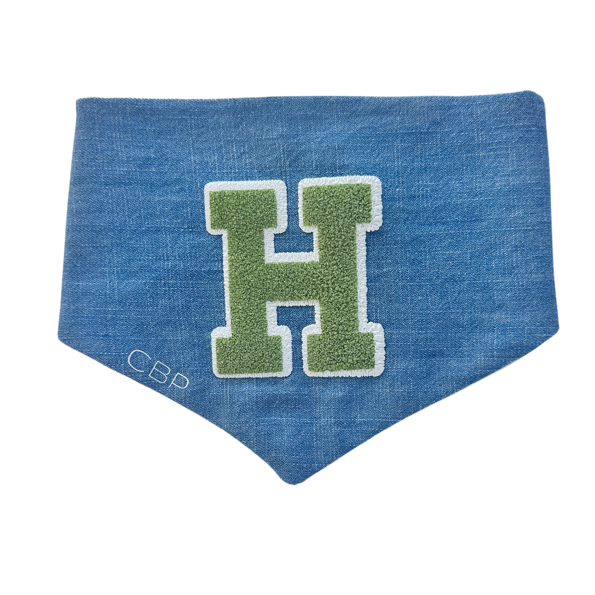 Have your dog be the ultimate cheerleader with our Torrance bandana, inspired by the iconic Bring It On film. This fashionable accessory showcases a 3D vinyl initial on denim, making your dog the talk of the town. Go team!