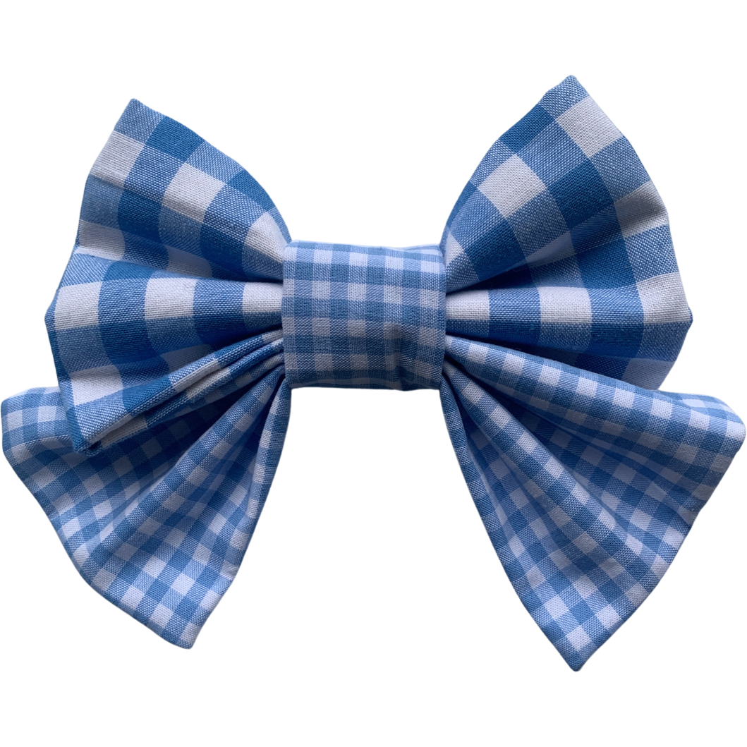 My Sailor Bows are made from the same great quality fabrics are my bandanas. Some will match the bandana gingham collection with plain tails to add your dogs name.